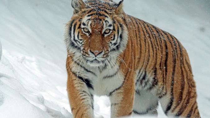 1、东北虎 东北虎是老虎中体型最大的亚种,这种老虎在圈养中可以活26年,在野外则可以活15年。东北虎身上有棕色和黑色的垂直条纹,一直覆盖到它们的腿上。与其它老虎亚种相比,它们的条纹更少、更窄、也更浅。虽然其它类型的老虎也有黑色的条纹,但只有东北虎有深棕色的条纹。