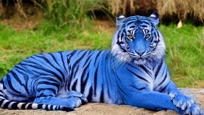 (5)蓝虎 蓝虎是在中国发现的一种罕见老虎。但是据科学家们说,这些蓝虎完全是伪造的,是用人工photoshop制作的,所以这种动物从来没有在野外或人工饲养中存在过。