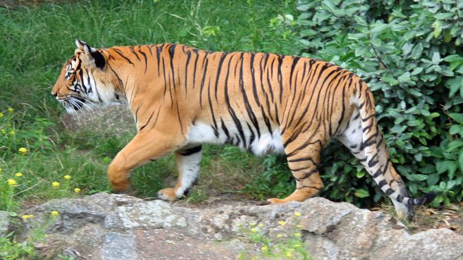 3、苏门答腊虎 苏门答腊虎是最小的老虎亚种。与其它物种相比,这种老虎身上有更多的条纹,而且它们的轮状毛也比其它老虎亚种的大。另外,它们的胡须又长又粗,耳朵则又小又圆。