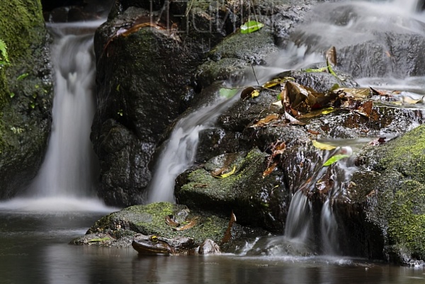 “巨谐蛙”对生存环境的要求很是挑剔,它们只喜欢待在热带雨林(或湿地)的溪流中,除此之外,它们还要求溪流比较湍急,并且水质清澈、含氧量高。正因为如此,“巨谐蛙”在地球上的分布范围非常小,就已知的情况来看,只有在喀麦隆和赤道几内亚才可以发现它们的踪迹。 在白天的时候,“巨谐蛙”一般都呆在水里,只有到了夜里才会到陆地上行动,它们的“食谱”很广,基本上凡是能够吞下的小型动物它们都会去捕食,例如鱼、昆虫、甲壳类动物、软体动物、小型哺乳动物以及两栖类动物等等。 值得一提的是,“巨谐蛙”也和其它的青蛙一样对在自己眼前活动的物体非常敏感,但对静止物体的感觉却很迟钝,甚至可以说是“视而不见”。 “巨谐蛙”的繁殖期一般在7月、8月、12月以及次年的1月,在繁殖期间,雌性“巨谐蛙”一次会产下数百枚卵,由于它们的卵比较大(平均直径约为3.5毫米),很容易引起一些捕食者的注意,因此“巨谐蛙”会有意识地给后代们筑巢,并且加以保护。