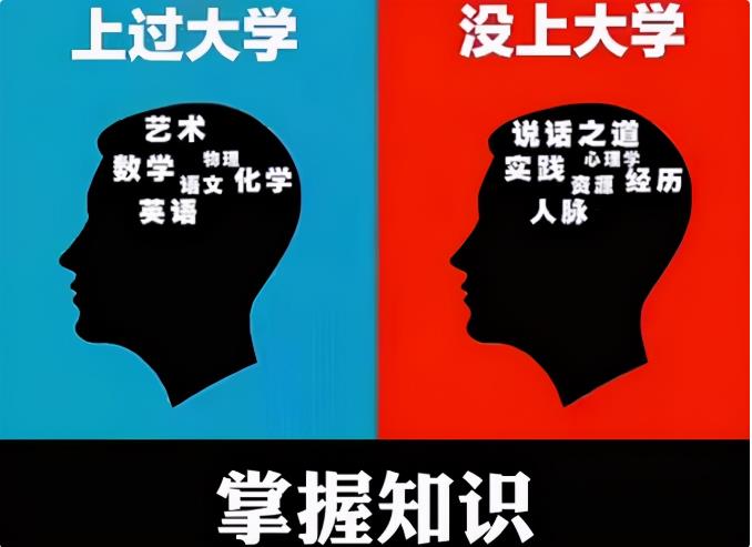 “掌握知识”的不同 上大学和没上大学的第一个区别,就是“掌握知识”的不同。上过大学的学生,理论性知识一般都比较专业。他们对待事情时,更容易去思考这件事情的本质。而且大学生更能够通过知识的积累,走向未来的科研道路。 没上大学的学生,在为人处事上有着过人之处。他们的说话之道,资源人脉都不是一些刚毕业的大学生所能相比的。还有最重要的一点,那就是实践操作能力也是毋庸置疑的。