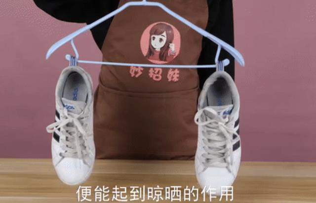 鞋提作用三:方便晾晒 洗完鞋子后,找个衣架穿过这两个“小尾巴”就可以晾晒了。如果你家里没有可以挂置的衣架,也可以用带夹子的衣架来夹住“小尾巴”。这样干得也更快一些。