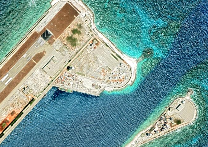 渚碧礁的位置比较孤立,原本是一座大型环形暗礁,礁盘的总面积有16.1平方千米,从环礁的西南到东北长度有6.5公里。美济礁也是一个椭圆形珊瑚环礁,总的占地面积比渚碧礁大不少,大概在56.6平方千米的样子,但它的地理位置刚好在南沙群岛的中部海域,具有极高的战略价值。