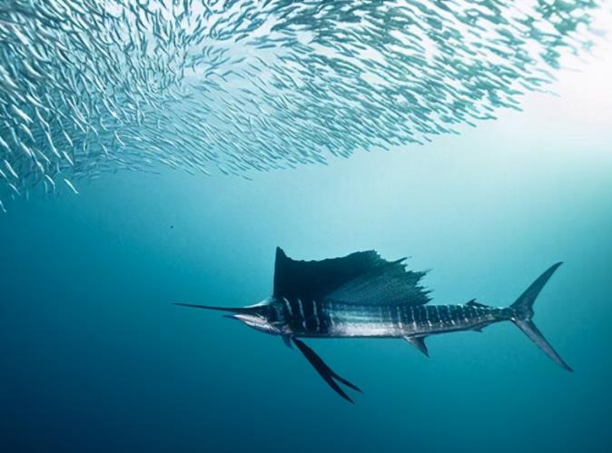 4.游的最快的鱼——旗鱼。 旗鱼是世界上游的最快的鱼,水中时速可达每小时110公里。