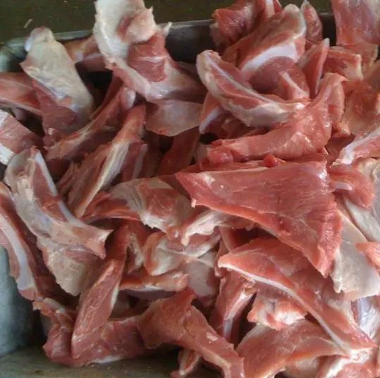 3.月牙骨 很多人在买猪肉的时候,看到月牙骨也不会购买,其实是因为不识货。生活中很多人都喜欢吃猪脆骨,而月牙骨就是猪脆骨,它是在猪的腿夹心肉与扇骨中间相连的那一小块软组织,因为形状像月牙所以被叫做“月牙骨”,一般的月牙骨上面都连着一层薄薄的瘦肉,不管是炖汤、卤制、爆炒都非常美味,吃起来爽脆有嚼劲。主要是月牙骨的价格很便宜,识货的人看到月牙骨都不会错过。