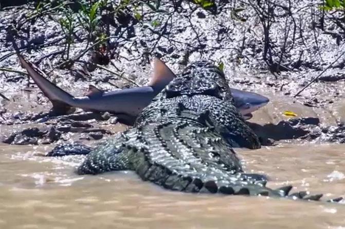 湾鳄,鳄鱼界的一哥,也是世界上体型最大最长的鳄鱼。 成年的雄性湾鳄体长最长能够达到7米的长度,但是大多数的雄性成年湾鳄的体长都在5米左右,体重能够达到600千克至一吨,简直就是一头荒野巨兽,湾鳄的寿命也是极其的悠久,平均能够活60-70年左右,活得越久的湾鳄体型就更加的大。 被人类捕获的最大的湾鳄叫做“洛龙”,在2011年时被捕获,也获得了吉尼斯纪录当中记录的最大的湾鳄,体长6.17米,体重达到了1075KG,堪称世界上最大的爬行动物。在大家的脑海当中还有一种体型庞大的爬行动物——科莫多巨蜥,最长的科莫多巨蜥体长3.13米,体重也只有166千克,在湾鳄的面前简直就是一个“弟弟”。 鳄鱼是和恐龙同期生活在地球上的生物,可以算是一种较为古老的物种,除了体型上鳄鱼几乎没有变化,证明鳄鱼是一种爬行类进化顶层的动物,所以它不需要再进行某方面的进化或者退化,就能够很好的生存在世界上。 湾鳄一般生活在沿水处,这个沿水处可不仅仅是河流,湾鳄还能够生活在海洋当中,在湾鳄的舌头上有一种特殊的腺体,能够将身体当中多余的盐分排出体外,湾鳄的游泳、憋气能力也是十分的强大,所以它才能够在海洋当中自由遨游。 大家都知道鳄鱼这个种类本身就是一种凶猛的动物,那湾鳄还能够有多凶猛呢?湾鳄会攻击在它眼中一切会移动的物体,岸边来喝水的水牛、牲畜、野猪及猴子,在海里甚至会捕食鲨鱼。与湾鳄一样能够在咸水和淡水当中生存的牛鲨,就常常成为了湾鳄的口中食物,甚至是体型较小的同类,湾鳄也是来者不拒。
