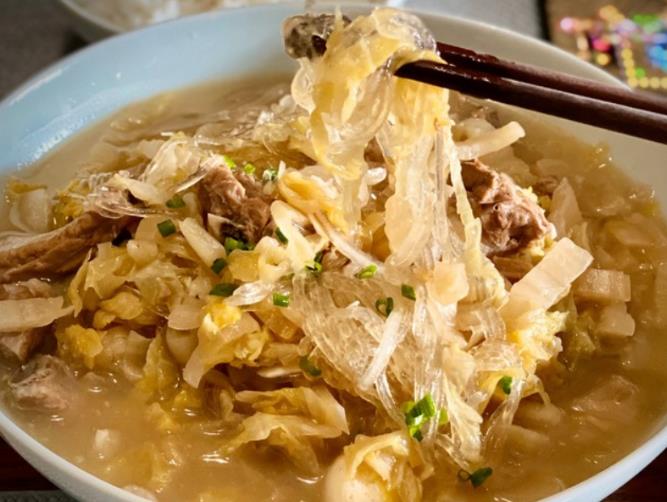 酸菜炖粉条 这道菜也是东北的特色菜之一,其实不单是东北,在河北的一些地区,也有腌酸菜的习俗,然而这道在北方的畅销菜,到了南方却不太受欢迎,其实是因为酸菜本身就是腌制品,会散发出一种难闻的味道,如果不加入辣椒的话,很难掩盖这种气味,因此在南方,酸菜鱼成为了最受欢迎的美食。