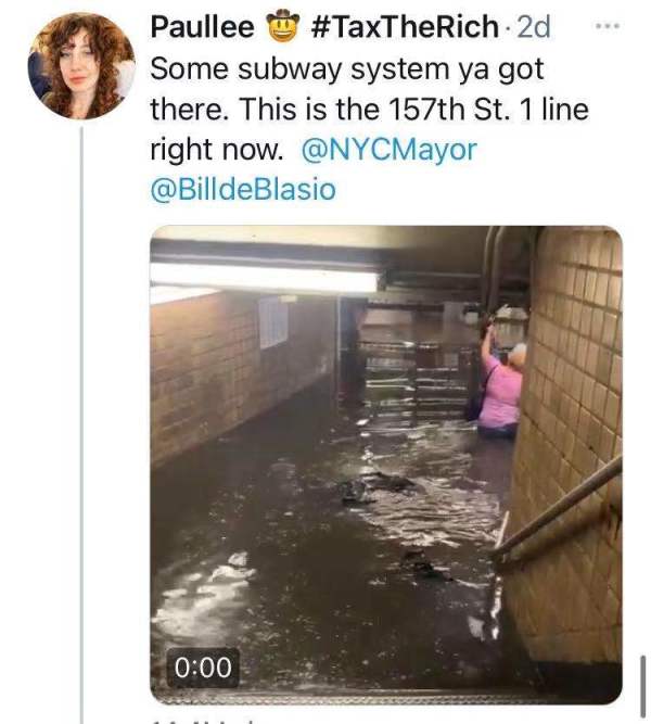 日前,纽约多个地铁站因暴雨被淹。在社交媒体推特上,有网友分享了乘客们在齐腰深的积水中跋涉的视频。然而,有美国网友在视频下面“碰瓷”,称这看上去“像中国”,结果在评论区遭到了“群嘲”。“这地铁系统可真行。这是现在的第157街1号线。”有网友当地时间8日在分享视频的同时在推文中这样写道,并@了纽约市长。
