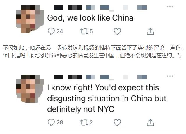 没想到的是,一件与中国完全无关的事情,竟然也有人扯上中国。有美国网友在该推文下留言说:“老天,我们看起来像中国”