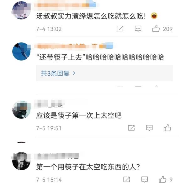 航天员聂海胜、刘伯明、汤洪波等人自从进驻中国空间站后就开启了一场又一场的太空吃播尤其是汤洪波已经靠吃播成功出道了这不,汤洪波带筷子上太空吃饭又火了,