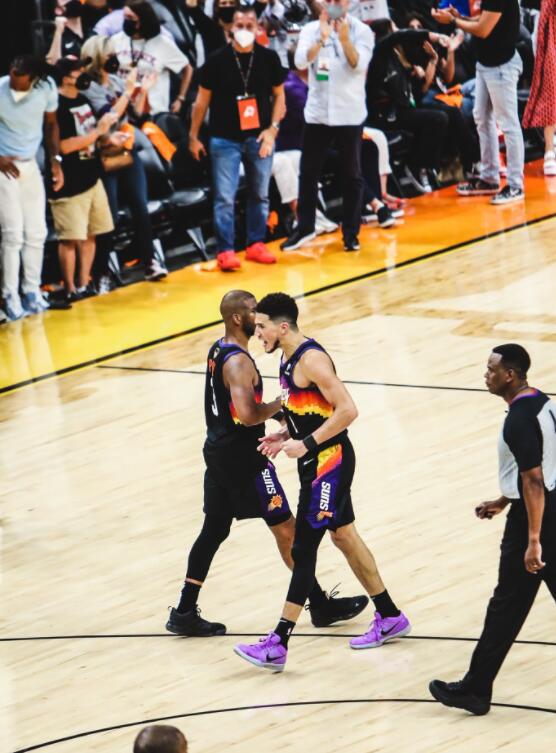 太阳主场118-108再胜雄鹿,总决赛2比0领先。雄鹿几乎寄出完美的护筐防守,但太阳命中20记三分!本场布克得到31分,对面字母哥攻防一体得到42分12篮板3帽。 开场雄鹿攻筐凶猛,同时防守端让霍勒迪盯保罗,塔克防布克,采取挤掩护蹲坑策略。字母哥抢断扣篮,篮下强攻,霍勒迪中投,突破。太阳这边克劳德、布里奇斯回应空位三分,布克远投干拔,太阳前15分全部来自三分线。塔克连得7分为雄鹿取得9分优势。保罗中距离,约翰逊也命中三分,之后布克、克雷格再中三分,太阳26-24反超比分!康诺多底角三分,波蒂斯补篮,首节雄鹿29-26领先。太阳首节命中8记三分,而雄鹿防得太阳篮下一球未进,油漆区20比0! 第二节保罗开始发挥,约翰逊又中三分,艾顿终于得到扣篮机会,太阳再次反超比分。霍勒迪、米德尔顿陷入低迷,雄鹿阵地战惨不忍睹。布里奇斯、克劳德、保罗、布克纷纷跳投回应。最后15秒两队完成几乎完美的攻防对决,最终艾顿完成2+1,上半场太阳56-45领先。 太阳在篮下几乎被完封的情况下,仍然取得11分优势!全队三分24投11中,布里奇斯得到13分,布克10分5助攻,保罗8分,克劳德9分8篮板。 雄鹿这边朱-霍勒迪、克里斯-米德尔顿进攻大失水准,两人合计24投5中得到11分。雄鹿抢下大量前场篮板(12个)却无功而返,全队投篮命中率36.5%,字母哥得到12分8个篮板。
