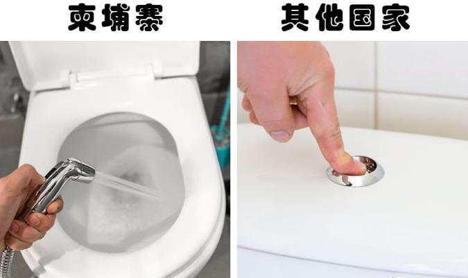 虽然如今人们的家中越来越多地开始安装坐式马桶,但在公共厕所里,最为常见的依然还是蹲式马桶。而这对于欧美诸多国家的游客是很难适应的,他们从小到大都习惯了坐式马桶,蹲式马桶的使用对他们来说太吃力。然而,从科学的角度来看,蹲式马桶其实要更加卫生和健康。 2、柬埔寨的厕所搭配的软管喷嘴