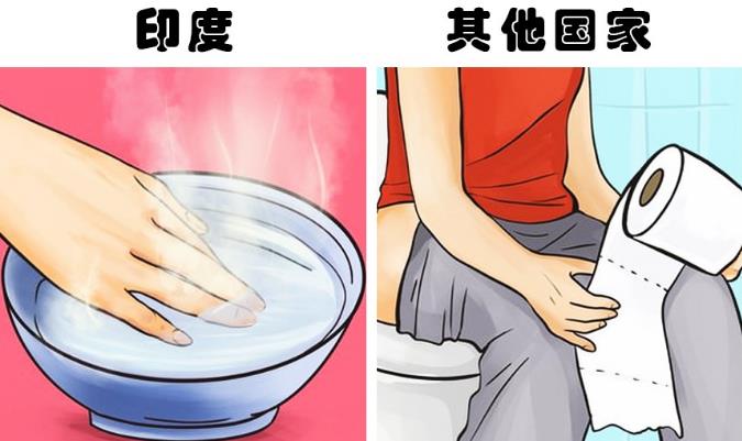 如果在印度旅行,你可能会发现在街头很难找到厕所,又或者你会发现一些基本就是露天的厕所。然而,当你找到一些封闭的厕所的时候,你还会看到更为奇怪的一幕,就是厕所里没有提供厕纸,但却提供了一个可以装水的桶。这是因为印度人习惯于在上完厕所后用左手清洁,而不是用厕纸。正因如此,在生活中,他们往往会用右手进行握手等行为。