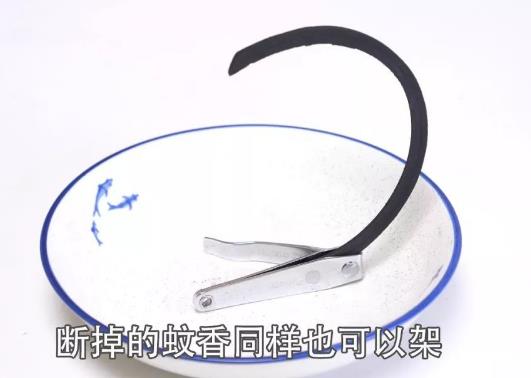 这样一个简单好用的蚊香支架就完成了,在下面放一个盘子还可以用来接灰。 指甲刀除了可以用来架整盘的蚊香,断掉的蚊香同样也可以架。