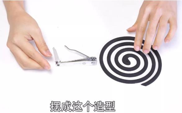 1、可以代替钳子 生活中要弯铁丝的时候,如果找不到钳子,可以用指甲刀来代替,把铁丝插进指甲刀的小孔里面,就可以把铁丝折成任意形状。 2、蚊香支架 夏天点蚊香的时候,如果找不到蚊香支架,只要把指甲刀摆成下面这个造型。