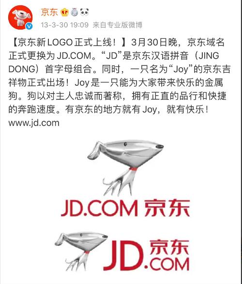 京东官方发文《宝,我最近去拍照了...》,宣布换新 Logo 。 京东表示,之前的 app icon,科学运用九宫格,JOY 居中,自下而上卡 jio 仰拍,显得腿长无比、身材苗条。新版 app icon,JOY 靠左,化成拟人两足小狗,脸蛋圆圆,乖巧站立来了个半身照。