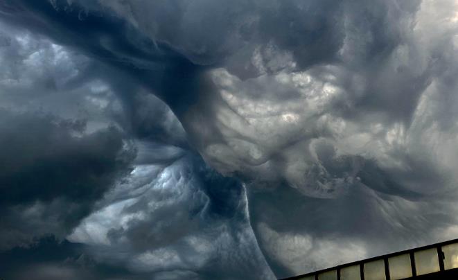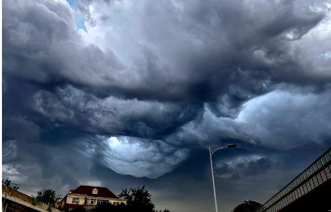 天津多位网友发视频称,城区上空云团呈快速翻腾滚动状态,看上去十分诡异。相关气象专家称,此为糙面云,层积云在锋面或其它强气流天气的作用下,堆积到极限发生褶皱,外貌变得极为恐怖的一种现象。和灾难没有任何关系,一般是出现在大雨后。糙面云是一种非常罕见的云,在我国的目击记录不多,大概只有十几次。