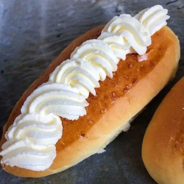 这种面包,一般要加入20%—30%的黄油或起酥油,才能形成特殊的层状结构,是否用的植物黄油,那就不得而知。因此这类面包都含有大量的脂肪,热量非常高。 典型的代表就是牛角面包,还有巧克力酥包、丹麦面包,又称起酥起层面包。 03.人造奶油面包 奶油又香又甜,丝滑诱人,但是大家知道吗?奶油分植物奶油和和动物奶油两种,这里的差别可大了!