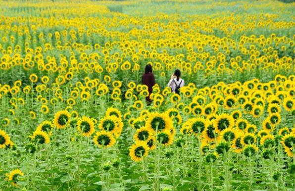 盛夏时节,除了夏雨荷,喜爱赏花的你最不能错过的就是向日葵了!与粉嫩的荷花相比,拥有娇艳的黄色的向日葵会带给你不一样的美感。现在北京城区内种植规模最大的、品种最全的向日葵观赏区,正在盛放期,共有20余个观赏向日葵品种,是北京城区内种植规模最大、品种最全的。接下来的几个周末都可以去观赏,最令人高兴的是它还是免费的。在奥林匹克森林公园北园,从北园西门进入,右拐一直前行,当你看到右侧有大片的向日葵花映入眼帘时,目的地就到了。这里的向日葵可以远观,也可以近赏。花田内铺设了木栈道,周围是高大的绿树,清风拂过,看着太阳下一个个笑脸似的花朵,会令你不由地心花怒放。既然是专门种植的花田,种类肯定不止一种,虽然黄色的葵花仍然是这里的主角,不常见的其它颜色的向日葵花在这里也能欣赏到,“火焰”“化装舞会”“油葵”“巧克力”“三阳开泰”“白月光”“乐翻天”“金富贵”“醉云长”“金拥碧翠”等各种向日葵会开出不同颜色的花朵,给你不一样的赏花体验。这里看完千万不要打道回府,从这里往东走不远,还有一片向日葵花田,这片花田与前一片最大的不同是前一片都是生长在平地上,这一片则是依托地势,从山坡上一直延伸下来,盛开的鲜花就像瀑布一样倾泻而下。最后要提醒大家的是,赏花的时候,要小心,不要到花田里踩踏,尽量在木栈道上观赏吧,让花田保持住它最美丽的模样。 温馨提示: 1、距离北园西门最近的地铁站是8号线林萃桥站,出站后,过五环路,步行可到达奥林匹克森林公园北园西门。 2、如果自驾前往,北园西门外停车场挺大,按小时收费。 3、入园禁止携带渔网、宠物等。