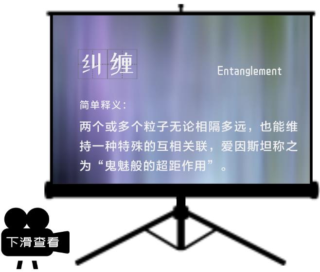 量子力学中的另一种最具代表性的诡异现象被称为纠缠,这是一种连爱因斯坦都无法理解的现象,他称之为“鬼魅般的超距作用”。 简单理解,纠缠就好像是把量子“连接”在一起,无论相距多远,即使你把一个粒子放在地球上,另一个粒子送去另一个星球,它们之间也能保持着一种特殊的关系,并且瞬间共享它们的某些状态。 粒子在产生这样的相互作用后,它们之间就成了不可分的整体系统。这就好比,在课程表中只有语文课和数学课,那么它们在某种意义上也是“纠缠”的,只要知道其中一门课程的时间,就可以推算出另一门课的安排。类似的,在纠缠的量子系统中,通过其中一个的状态,就可以知道其他纠缠的粒子的状态。因此这一现象在量子计算、量子通讯中发挥了重要作用。