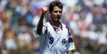 第2位 奥列格·萨连科(Oleg Anatolyevich Salenko),1969年8月25日出生于俄罗斯圣彼得堡,俄罗斯职业足球运动员。 萨连柯不是一位巨星级球员,但是他确创造了很多巨星都难以企及的记录,1994世界杯在与喀麦隆的比赛中他一人独进五球,能在世界杯赛场上单场独进五球,也就他一个。94世界杯后萨连柯名声大振,超过当时许多一流球星,可世界之后呢,他短暂加盟瓦伦西亚,状态也急剧下降;状态一年不如一年,后来听说在职业生涯最后一年,他来到中国甲A联赛的某队试训也没通过,再后来就几乎听不到有关他的新闻了。
