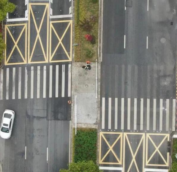 从杭州交警部门获悉,为避免行车司机视线被隔壁车道已停下让行的车辆遮挡,杭州交警已陆续在全市609个主要路口斑马线前设立禁停区,施划了5米或9米的黄色网格线,提醒车辆在让行时比以往距离斑马线更远的地方停下,不要驶入黄色网格标示的“禁止任何原因停车”区域。 “当斑马线上有人经过时,车辆需在网格线后的白色停止线内停下,不得驶入黄色网格区域内。”杭州交警支队秩序处设施科科长范强告诉澎湃新闻,在斑马线前设立禁停区是为了起到缓冲和警示作用。通过黄色网格线的施划,将停止线后移,避免“鬼探头”事故发生。 “鬼探头”此处指行车司机视线被旁边已停下的车辆遮挡,未看到斑马线上正在穿行的行人或非机动车,从而酿成事故。 澎湃新闻记者驾车在杭州街头体验,在施划了黄色网格的斑马线前,遇有行人通过,大小车辆绝大部分自觉地在黄色网格前停下,比以前早停了约5米或9米,而司机的视线不会再被隔壁车道上的让行车遮挡。