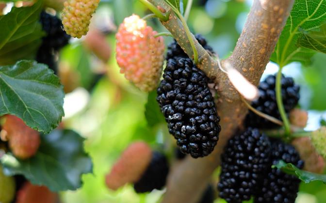 桑葚,被新疆维吾尔族人民称为“阿克玉祖木”,意思彩色的葡萄。分为白、紫两种品种,味甜汁多,是新疆人常食的水果之一。
