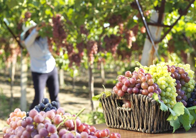 吐鲁番葡萄,世界闻名,因地处低洼,昼夜温差大,日照时间长,再加上当地坎儿井(雪山融水)灌溉,葡萄生长茂盛,含粮量高。吐鲁番葡萄有几十种,常见无核白葡萄,玻璃脆,黑加仑葡萄,美人指,马奶子,木纳葡萄,红提葡萄。6月初早成熟,7月中旬采摘,8、9月集中上市,品种不一样时间会有先后。