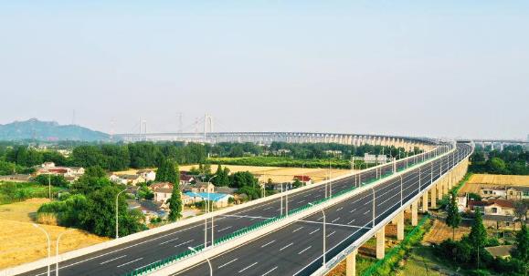 “克难”——克服多重困难 五峰山公路接线工程作为江苏省首条新建双向八车道标准高速公路,是代表江苏省参加交通运输部品质工程攻关行动试点项目,也是江苏省第一批公路水运品质工程示范创建项目,省绿色智慧科技示范工程项目。工程建设面临诸多技术与管理难点: 工期紧。相接的公铁合建跨江主桥比本项目早3年开工,给公路接线工程带来巨大的工期压力; 桥梁多。全线桥梁比例高达50%,其中芒稻河特大桥,地处淮河尾闾,为淮水行洪入江的主要河道,大桥5个水中墩全部采用利于泄洪的低桩承台,深水基础施工技术难度大; 桥墩高。与公铁合建大桥相接的南北引桥多为35米以上高墩,最高墩达66米。高空作业多,施工周期长,特种设备投入数量大,安全管理风险非常高; 控制难。南北引桥上部结构为工厂预制超宽节段箱梁,宽度达20米,存放及吊装控制难度大。桥面不设混凝土调平层,主梁线形控制精度要求高; 路基软。全线大部分路段位于沿江圩区,90%的路基段存在软土等不良地质,软土层厚最大达24米,埋深达26米,施工困难。 顺畅——打开融合发展新通道 一条高速公路打通江苏大江南北融合发展新通道。 在镇江长江以北的 " 飞地 " 上,高桥国际学校校长姚晨正无比期盼着五峰山长江大桥南北接线的开通。"跨江通道一通,第一个就解决了我们学校的出行问题。" 姚晨告诉记者,学校有二十多名老师家住在江南,每天乘坐汽渡通行,来回时间非常长。如果遇到下雨下雪或者大雾天气,汽渡不通,老师们就赶不过来,需要临时调课,高速公路一通,老师们再也不怕大雾锁江了。 “我们的货物80%走高速公路运出,以前上高速必须从润扬大桥或是杭集走,至少要半小时以上才能开到高速口,现在3分钟就可以直接上高速了。”站在李典头桥入口,江苏亚光医疗器械有限公司副总经理张建强兴奋地说,医院对医疗机器的运输效率要求很高,高速公路入口通过到了企业门口,未来可以更好地服务江浙沪的客户。而且,时间的压缩、路程的减少,一年可为企业降低成本20%,节省几十万元物流费用。长江两岸一路相牵,与苏南、浙江、上海之间交通更方便了,区域优势出来了,企业的辐射面会更广,发展更有信心了。