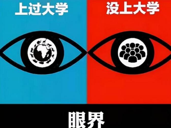 图一:眼界的差距,决定人生的高度 上过大学的人,即使没走过大千世界,也在书本中领略到了山川河流;而没上过大学的人,眼中只有眼前以自我为圆心十公里以内的人事物,眼界极其狭隘。 眼界决定着人生高度,没上过大学的人,大多二十三四岁就结婚生子了,每天做着最累的工作,为车贷房贷奔波着。