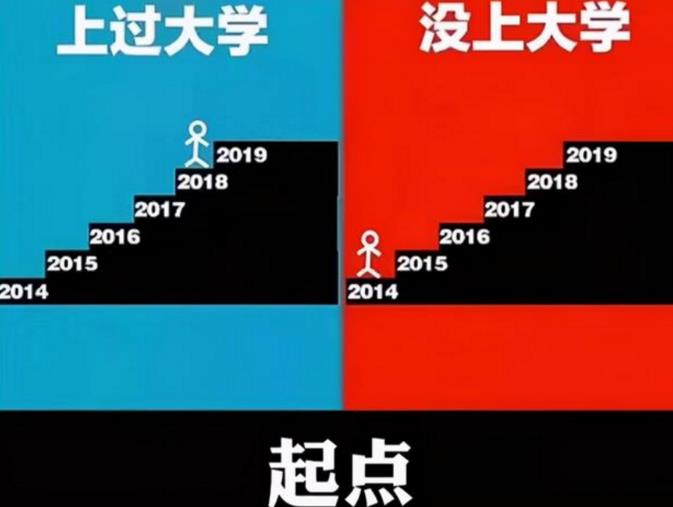 图四:起点不同,早进入社会早受累 没上过大学的孩子,大多初中或高中辍学就进入社会打工了,见惯了人情冷暖,遭受了很多苦累,人也变得世故化。 而上过大学的孩子,最小的进入社会也都22岁了,少受了2-3年的罪,对人生充满激情和希望,且又如同一张白纸,无论进入哪个行业都可以添加绚烂的色彩。