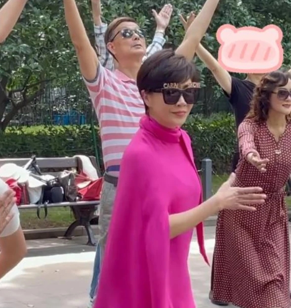 近日,刘嘉玲在社交平台晒出短片,以一身鲜艳裙装打扮混入人群中大跳广场舞,不仅没被认出,还被后方大叔提醒舞步,场面十分搞笑。