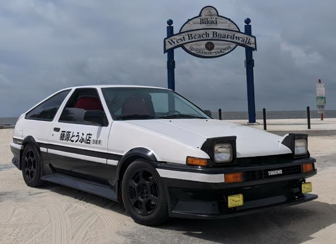 一、AE86 (藤原拓海、秋山涉、乾信司) 提到《头文字D》里最经典的一款车,没有什么好说的,榜首的位置一定是属于主角拓海驾驶的这一款AE86。在这一个车款下,AE86还可以细拆一下型号,剧中拓海驾驶的是Trueno,而秋山涉驾驶的是Levin,乾信司驾驶的也是Trueno。 在现实世界之中,AE86是丰田出品的一款经适型轿车,车身轻算是这台车能用在赛道过弯上的唯一优点了。在作者重野秀一将AE86设定为漫画主角车之后,这一款车的人气随着漫画的走红逐步攀升。只不过,比起有情怀与经典回忆的AE86,相信现实世界中的大部分女孩儿还是喜欢坐奔驰。