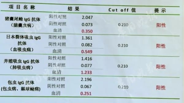 罗某血液寄生虫抗体呈阳性 经进一步检查,罗某血液寄生虫多项抗体呈阳性,表明罗某体内已感染了多种寄生虫。4月22日,因病情严重,罗某被送往遵义医科大学附属医院。 遵义医科大学附属医院急诊科刘同英医生说,罗某颅脑CT右侧颞顶叶脑出血、右侧颞顶叶脑水肿,左侧肺少量液气胸、右侧肺有少量胸腔积液。此外,他的肝右叶也受到了损伤。 结合检查结果,医生讨论后认为,罗某生活在寄生虫感染区,有疫水接触及生吃螃蟹的情况,考虑其感染了寄生虫。 随后,主治医生为罗某制定了驱虫方案。果然,服药第二天,罗某就感觉肚子舒服多了,头昏头痛的症状也有所缓解。刘同英医生说,经过一周的治疗后,罗某痊愈出院。据介绍,寄生虫是具有致病性的低等真核生物,可作为病原体,也可作为媒介传播疾病,对人体的肝、肠、脑等造成不同程度的损害。寄生虫有的可潜伏10年,最长可存活20年,繁殖较快的日本血吸虫雌虫每天可产卵1000个左右。 医生提醒,良好的生活习惯,是拒绝寄生虫感染的关键,包括不饮生水、不吃生肉、生海鲜、生河鲜,不吃不洁的生冷食物,蔬菜瓜果也一定要洗净后才能食用。