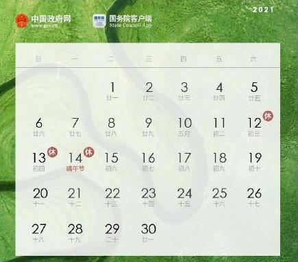端午节3天小长假又要来了!6月12日至14日放假共3天,这次没有调休!端午节下一个假期要等到9月份的中秋节,2021年还有一个7天的国庆节假期。