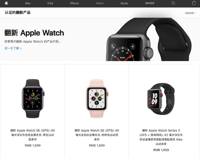 近日苹果官网上架了一批官方翻新的产品。里面有几款Apple Watch的价格已经低于第三方平台的百亿补贴价格了。 如Apple Watch SE苹果官翻价格是1899元起,而PDD百亿补贴是1952元起,对于没有强迫症追求完美无瑕全新产品且预算稍低的用户来说可以适当考虑一下。 参数上,Apple Watch SE采用S5同款S5芯片+W3无线芯片,S3同款光学心率传感器, S4同款视网膜显示屏 不支持AOD息屏常亮,同样是矩形表盘,40mm和44mm两种规格,支持摔倒检测,全天候高度计等。同样不标配充电头。此外,其相比S6不支持血氧检测,少了电极式心率传感器,同样支持「Family Setup家人共享设置」(支持中国电信和中国联通,家长可以定位孩子位置,限制孩子的可访问联系人等) 作为补充,苹果表示每款 Apple 认证的翻新产品都经过严格的翻新流程,其中包括按照与全新 Apple 产品同样严格的功能标准进行全面测试。你的翻新设备可以真正地“焕然如新”,并提供与全新设备售价相较最高可达 15% 的特别优惠。