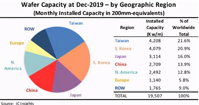 台积电4月22日临时董事会核准资本预算28.87亿美元,将在其南京厂扩产28nm制程产能,预计2022年下半年开始量产,目标2023年达到每月4万片的产能。台积电指出,此举是为了满足结构性需求的增加,以及应对全球车用芯片短缺开始扩及全球芯片供应链的挑战,希望以最快的速度提供市场急需的28nm产能。 28nm的用途比较广,不过台积电着重提到了车用芯片紧缺的问题,目前电动汽车产业大势所趋,而中国大陆是世界最大的汽车制造基地,台积电在南京厂扩大投资,有利于其就近供货抢占车用芯片市场。 对于我来说,关注的三个点, 第一点是加快芯片产业链在中国大陆聚集,国内本土芯片产能的稀缺,其实是超出我们的想象的,我国芯片设计产业在快速发展,但是受到国内芯片制造产能不足的严重制约,不得不依靠境外产能。要尽快形成芯片产业链在中国大陆高度聚集,将形成我们极大的优势,而现实是全球芯片产业链高度在台湾地区聚集,成为台湾经济发展的核动力。 因为芯片厂周围会形成芯片设计,芯片封测,材料和设备的工厂聚集,形成极大的优势,使得台湾的半导体产业优势难以被替代。从中美贸易战的情况来看,产业链聚集成为阻止我国产业外迁的一大优势控制点,因此芯片产业链在中国大陆形成聚集效应,是有极大的好处的。 这里我引用下IC Insight的图,2019年12月中国大陆境内的晶圆产能只占全球的13.9%,可见我国芯片产能严重不足,实际上我们也知道芯片长期是我国进口的第一大金额的商品,超过了石油。从下图也可以看出,全球晶圆产能91%集中在中国台湾,韩国,日本,中国,美国和欧洲,所以可以说,芯片工厂哪怕是成熟制程,也是有较高技术含量的,发展中国家除了中国没有多少芯片产能。