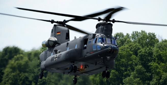 美国CH-47“支奴干”:是由美国波音公司研制的多用途直升机,采用纵列双引擎双螺旋桨结构,于1963年正式服役,总产量1100余架,最大起飞重量23吨 ,可载员33人,具有优秀的飞行性能和出色的吊运能力,具备独特的后轮单点悬停着陆功能。