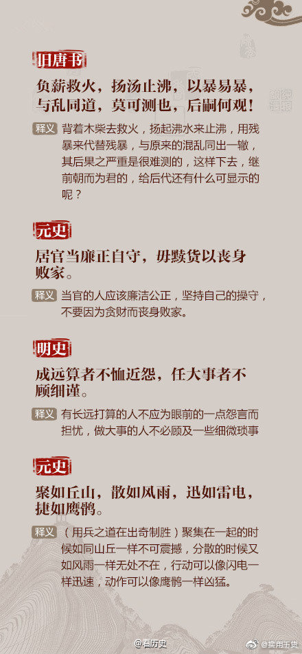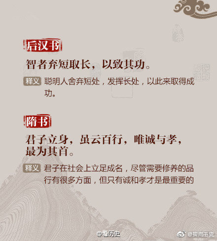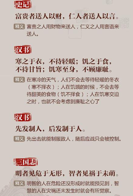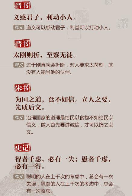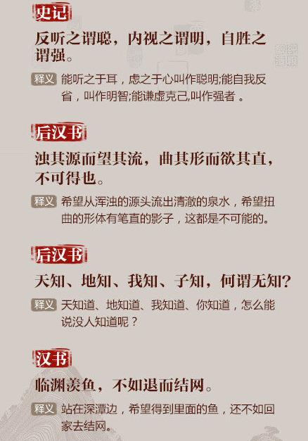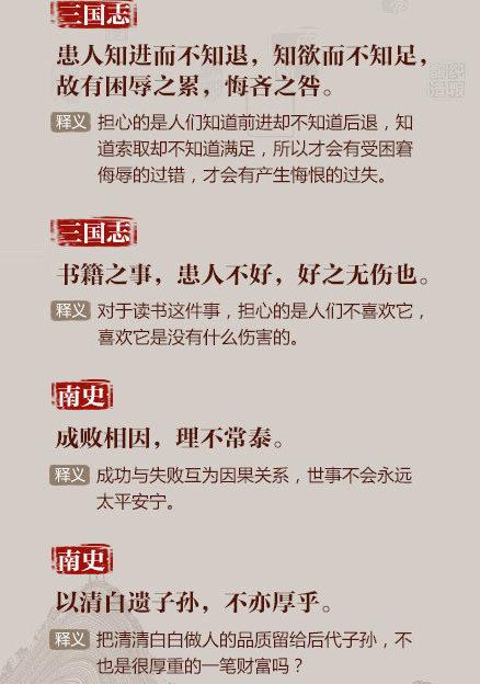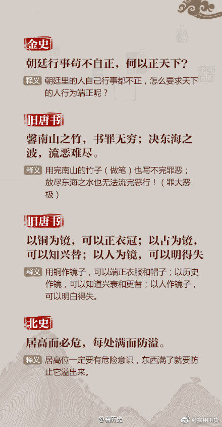 ①以铜为镜,可以正衣冠;以古为镜,可以知兴替;以人为镜,可以明得失;②书籍之事,患人不好,好之无伤也;③反听之谓聪,内视之谓明,自胜之谓强……读史求识,脱俗求真