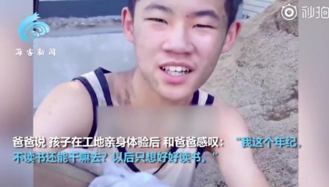 近日,一位父亲带15岁儿子去工地体验搬砖的视频引发关注。 视频中,15岁的儿子说自己很讨厌读书,爸爸无奈之下直接把他带去工地搬砖。体验了工地生活后孩子十分感慨,爸爸先问累不累,孩子喘着气回答“累”,爸爸接着问他读书好还是干活好,孩子连声回答读书好读书好。