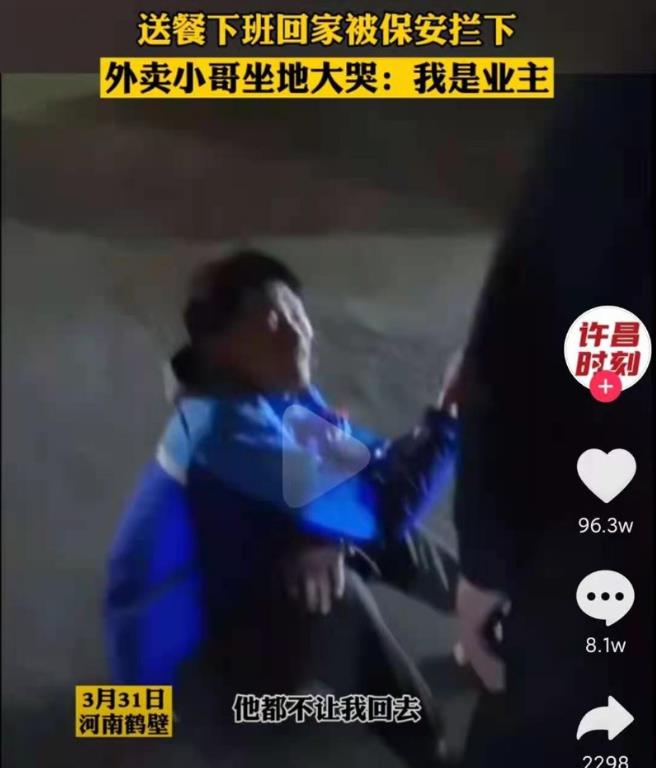 近日,河南一位外卖小哥崩溃大哭的视频上了热搜。据了解,事情发生在鹤壁浚县,一外卖小哥深夜送晚餐下班回家,却被自家小区保安阻拦不让进,小哥坐地崩溃大哭:“我是这里的业主!”情绪十分激动。