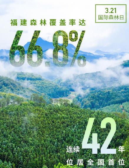 近年来,我国森林覆盖率已由20世纪80年代初的12%提高到目前的23.04%,森林蓄积量提高到175.6亿立方米,我国人工林面积居全球第一。“中国最绿”省份福建,其森林覆盖率达66.8%,连续42年位居全国首位。中国创新推动森林可持续经营,积极参与全球森林治理,得到了国际社会的高度评价,为实现全球森林目标贡献了中国智慧和力量。