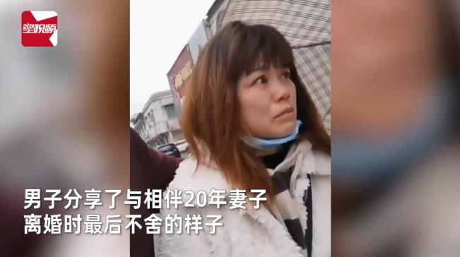 江苏苏州。结婚20年的夫妻离婚,两人从民政局出来后泪流不止。男子对前妻说:“我希望你以后好好保重,这是我最后讲一句我爱你,我放过你了。”
