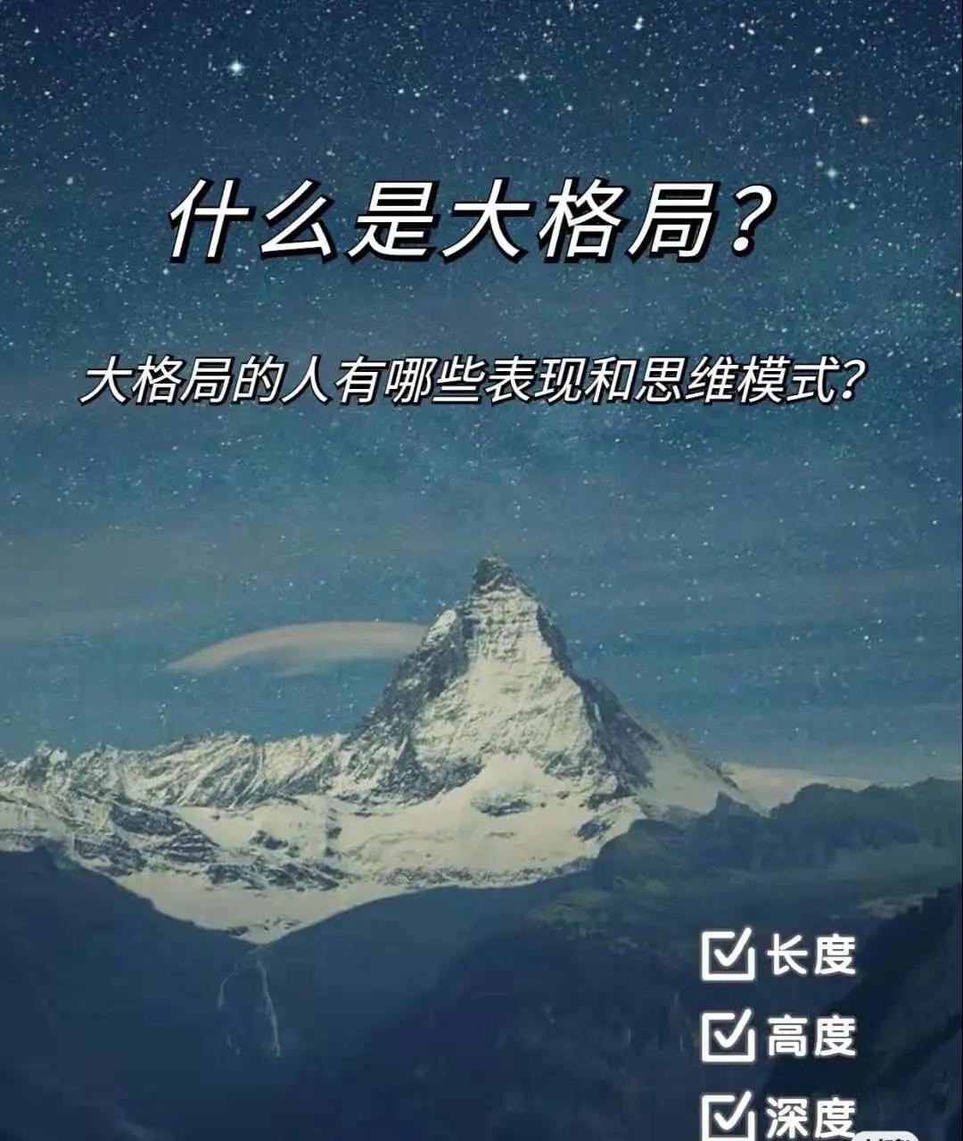 在今天这个知识不断更新的世界里,我们是在不断刷新自己的知识结构,有一点很重要,就是尽量酝酿一种大胸怀。 大境界才能有大胸怀,大格局才大有作为。 成功者运气的背后隐藏着大格局 1、拥有怎样的格局,就拥有怎样的命运。 拥有大格局者:有开阔的心胸, 没有因环境的不利而妄自菲薄,更没有因为能力的不足而自暴自弃。 拥有小格局者 :往往会因为生活的不如意而怨天尤人,因为一点小的挫折就一筹莫展,看待问题的时候常常是一叶障目不见泰山,最终成为碌碌无为的人。 2、格局不够大,人生成就再高也有限。 一棵石榴种子的三种结局: 放到花盆里栽种,最多只能长到半米多高;放到缸里栽种,就能够长到一米多高;放到庭院空地里栽种,就能够长到四五米高。 3、“局限”就是一个人给自己的“局”太小。 格局不是先天性的东西,和你目前的人生环境也没有必然的联系,格局是一个人对自己人生坐标的定位。人生所能到达的高度,往往就是人们在心理上为自己选定的高度。如果一个人心中从来没想过到达顶峰,那么获得成功的几率也不会很大。 格局,是站在高处看人生 人生在世,不过沧海一粟。我们在意的时间,可能只是宇宙电光火石般的瞬息。我们纠结的地方,也许不过才如蜗牛角那样渺小。 何为格局?便是你如何看待世界与自己。 有格局者,成大事也。但其实大多数人都过着平凡的日子,都是为小事而忙碌着。心怀大格局,是为了过好小日子,实现属于自己的理想。 知乎有人问过:“你认为的格局是什么样?” 有个高赞的回答是:“能享受最好的,也能承受最坏的。” 人有大格局,便深知生活的常态是高低起伏。以低调之心,行高调之事。见过高山,方知下山不易,才会格外珍惜每一个随风而行的日子。终其一生,我们不过都是人生路上的旅者。心中有大格局,如同占领高地。