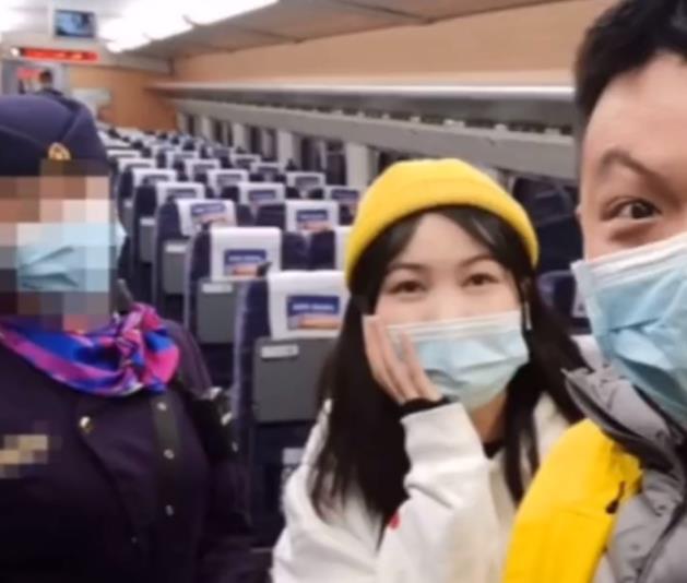 杨先生乘坐从南宁到广州的高铁时,上车后发现车上没人。随后一位女孩也来到车厢,并且座位在挨着他的隔壁座位。列车启动后,乘务员来到车厢告诉他们整列车只有他们两位乘客,而且座位还挨着,恭喜你们包车了。这时杨先生和隔壁的女孩才发现车上只有他们两个人,大家都觉得很有缘分,就在车厢里拍照留念。