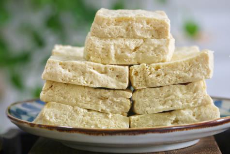 冻豆腐,是把白豆腐冷冻之后得到的一味好食材。之所以说它好,是因为冻豆腐的口感及味道,都非常的美好,因为冻豆腐的孔隙可以吸收更多的汤汁,所以,烹饪过后的冻豆腐,非常的入味儿,而且它的弹性好,这也造就了它的好口感;再一个,食用可以分解人体的脂肪,你看,那些减肥的人,通常都会把豆腐做成冻豆腐再食用,不仅补充了蛋白,顺便也苗条了一把。 做冻豆腐相当简单,顾名思义,它就是“冻”过的豆腐。但大家不要以为把豆腐切巴切巴冻进冰箱就了事。冻豆腐要好吃,它的蜂窝就要大,空隙越大,弹性越好,烹饪起来就越美味。为了让它的蜂窝更大一些,我通常是把豆腐蒸过之后再拿去冷冻,用热胀冷缩的原理,让它的组织孔隙更大。喜欢吃冻豆腐的朋友可以跟着我做起来了,一次多做些,吃上一两个月没有问题。自己做,蜂窝大,不粘连,比买的干净卫生。 【冻豆腐的做法】 【食材】:豆腐 【具体做法】: 1、我用的是北豆腐,南豆腐能不能做,我不太清楚,因为我家平时都是吃北豆腐。 2、把北豆腐切成大厚片。豆腐要冻出蜂窝状,不能太薄,得留给它产生蜂窝的空间。 3、然后把豆腐切成自己想要的大小。 4、把切好的豆腐一一摆在蒸锅的篦子上,最好是不要重叠。 5、然后上锅大火蒸上20分钟左右。北豆腐在蒸的过程当中,就有蜂窝产生了。 6、把蒸过的豆腐晾至不烫手,分别摆进可以进冰箱冷冻室的容器内,这里一定不要重叠,不然豆腐会冻在一起分不开。 7、待豆腐完全晾凉,就可以放进冰箱冷冻了,一天即成。这是冻了一天一夜的豆腐,刚刚从冰箱取出时,可以看到它的颜色发生了变化,由白到黄。 8、然后把冻豆腐按需装进保鲜袋,系住袋口,放冰箱继续冷冻保存。不管是煮汤还是烧菜,再或者涮火锅,它的味道都是极好的。