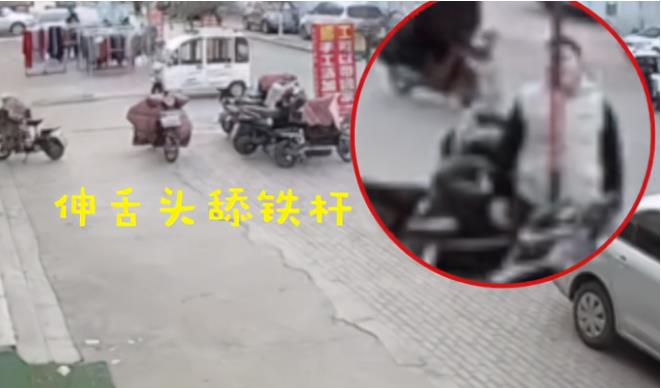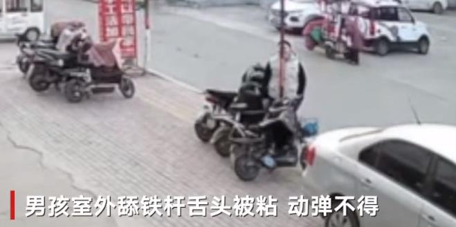 山东一男孩大冷天伸舌头舔铁杆一秒被粘 邻居接热水相救