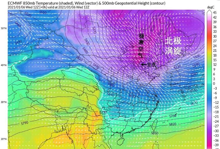 北极涡旋大举进驻我国,1月6日晚8点的超级计算机初始场数据上看,北极涡旋中心已经来到了我国东北地区,而随着北极涡旋的大举南下,北极涡旋引导巨量的极寒空气渗透到我国内蒙古和河北等地,带来了异常强烈的严寒天气。到今天,我国河北山东山西北京天津内蒙古多地严寒无比,北京南郊观象台出现-19.6度的极低气温,打破其观测记录以来的最低气温,内蒙古中东部、河北北部及山西北部出现大范围的-25度以下低温,在这当中,山西大同降到-31.1度,再创历史新低。在此之前,大同的最低气温出现在1967年1月15日,-29.1度,今天的严寒直接将历史纪录拉低了近两度,属于罕见的极端寒冷天气过程。北极涡旋原本应该是在北极待着的天气系统,如今大举南下进入我国东北地区,也有的就要问了“这是不是气候乱套了?”今年1月的北极涡旋之所以如此不安分,是因为北极涡旋被“偷家”——之前的1月3日,从北半球500百帕层面天气形势图上看,北半球从大西洋到北极圈和东欧一线的高压区旺盛发展,形成了一连串强盛的高压坝,而原本应该待在北极圈的北极涡旋只能被挤出来,挤到了北极圈以外,而相当一部分北极涡旋就被压到了亚洲一带。
