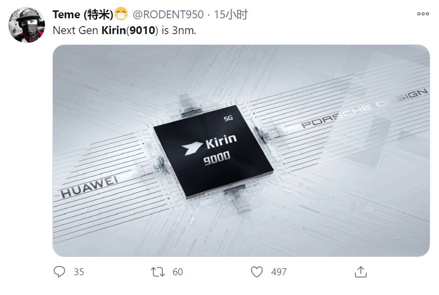 有推特博主爆料称,华为下一代旗舰处理器将命名为 Kirin 麒麟 9010,将采用 3nm 制程。华为华为海思正在研发 3nm 芯片,内部暂定名称是麒麟 9010。 目前世界上最先进的芯片制造工艺为三星以及台积电的 5nm 工艺,但是由于此前的禁令导致华为此后不能够依靠这两家代工厂进行代工,因此新一代麒麟芯片的研发受到了很大的阻碍。目前华为旗舰手机搭载的麒麟 9000、9000E SoC 使用台积电 5nm 制程制造,集成了高达 153 亿个晶体管;采用 1×A77,3×2.54GHz A77,4×2.04GHz A55 设计,最大核主频高达 3.13GHz。 目前三星以及台积电的 3nm 工艺研发受阻,最快也要等到 2022 年才可以实现量产。外媒 Gadgets360 表示,华为芯片的停滞帮助了联发科,超越高通成为了目前产量最大的手机芯片厂商;如果针对华为的禁令在未来解除,华为有望与苹果一同用上台积电的 3nm 工艺。