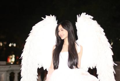 小S二女儿Lily万圣节造型曝光,她身穿白色抹胸短裙,戴着超大翅...